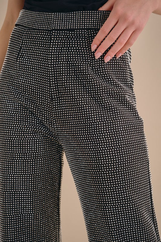 Introducing Alyssa Pants, the bedazzled bell-bottom pants for adding a touch of sparkle to your wardrobe. Made with high-quality materials, these pants offer a stylish and unique design that will turn heads. Elevate your fashion game and stand out from the crowd with Alyssa Pants.
