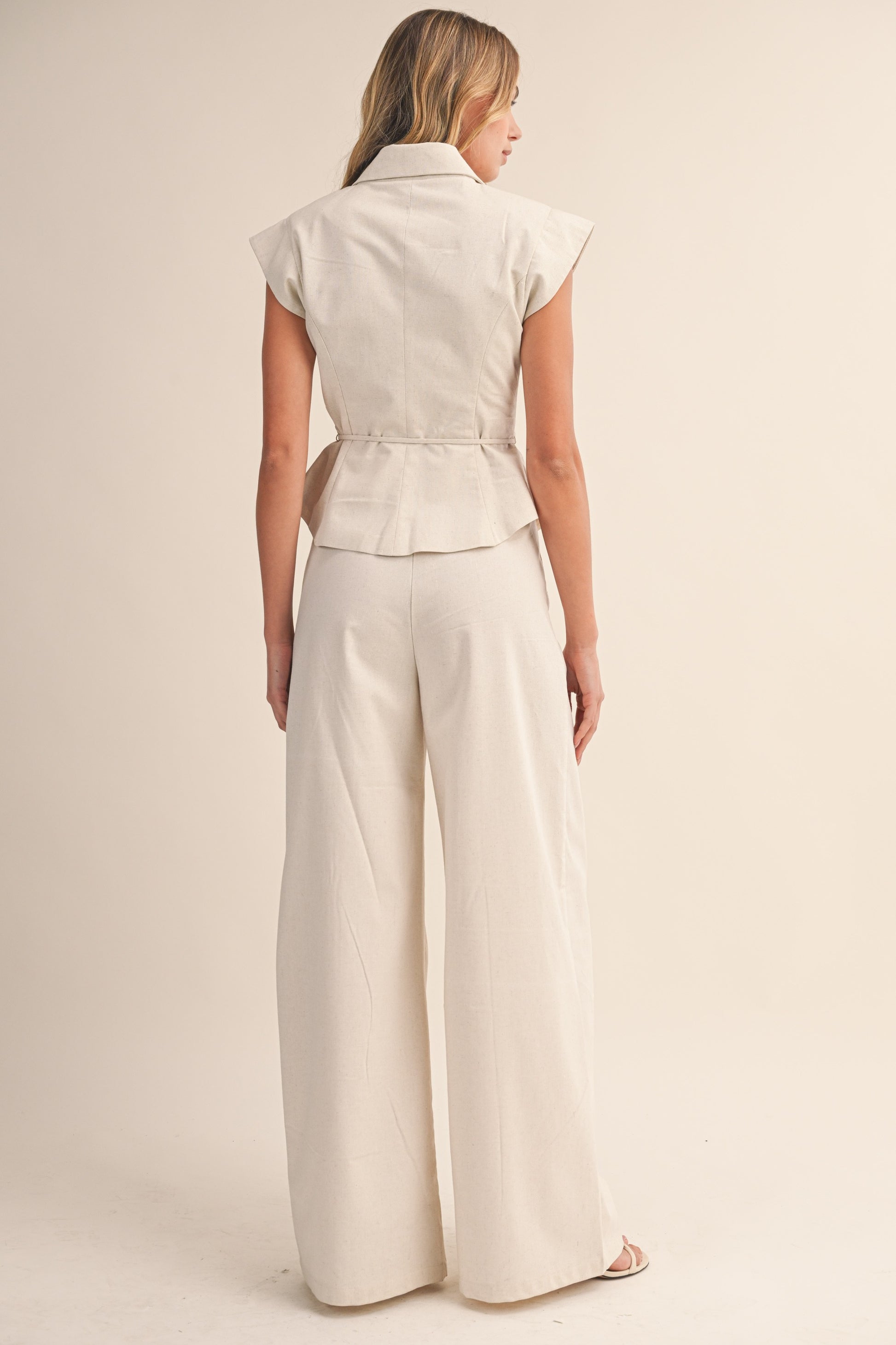 OVERSIZED SHOULDER SLEEVELESS TOP AND LONG PANTS SET