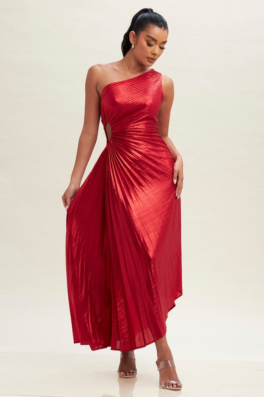 METALLIC CUTOUT OUT PLEATED DRESS 100%POLYESTER